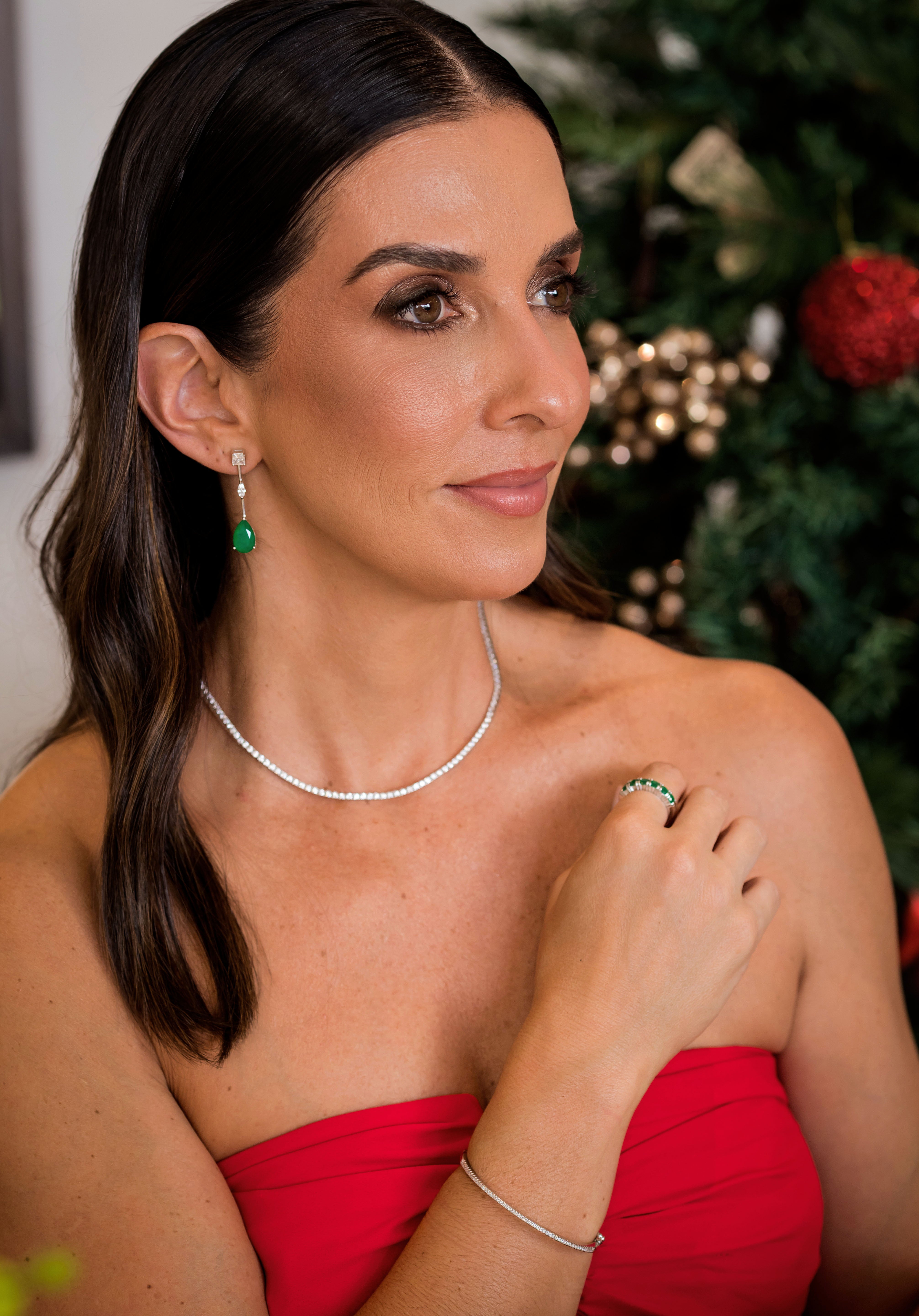 Meia Aliança em Prata 925 Cravação Esmeralda