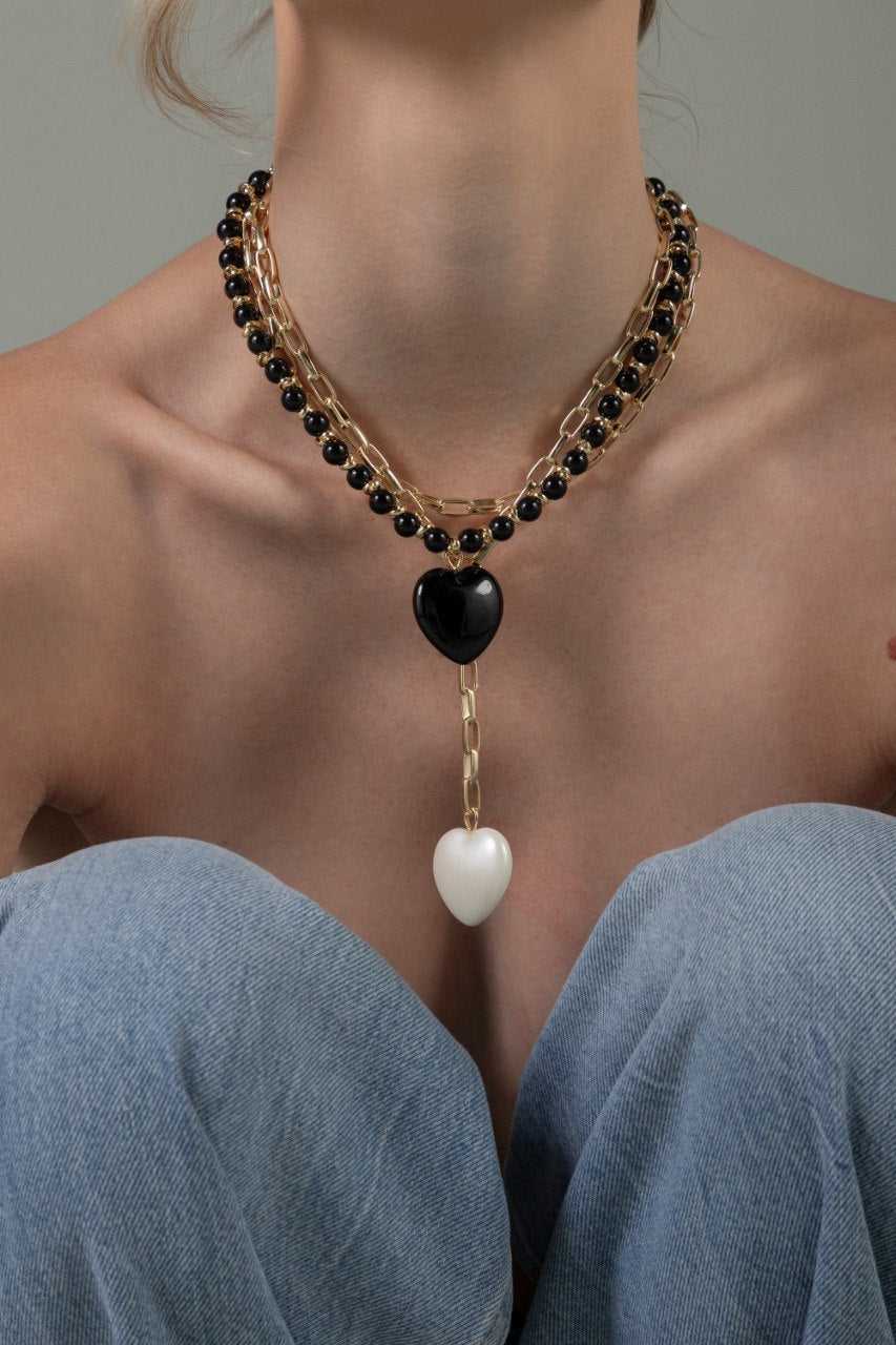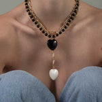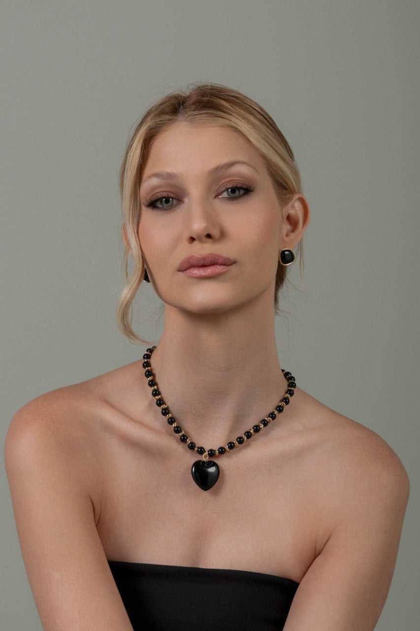 Colar com pingente em formato de coração feito em resina preta, trazendo um toque de modernidade e sofisticação. Uma peça versátil que combina delicadeza e estilo, perfeita para complementar qualquer look com personalidade