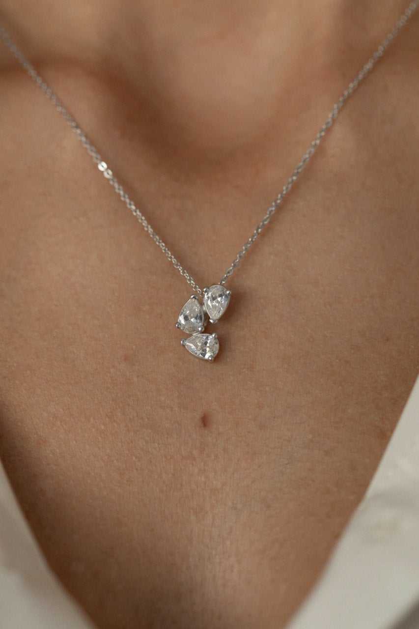 Colar em Prata 925 com três gotas delicadamente distribuídas ao longo da corrente, criando um visual elegante e harmonioso. Uma peça versátil que ilumina o colo com sutileza, ideal para produções modernas e femininas