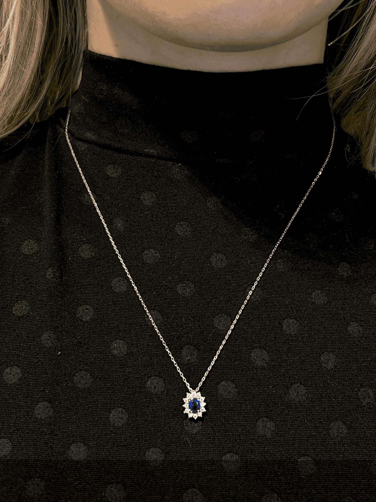 Colar Prata 925 Oval – Cravação Princesa com Safira