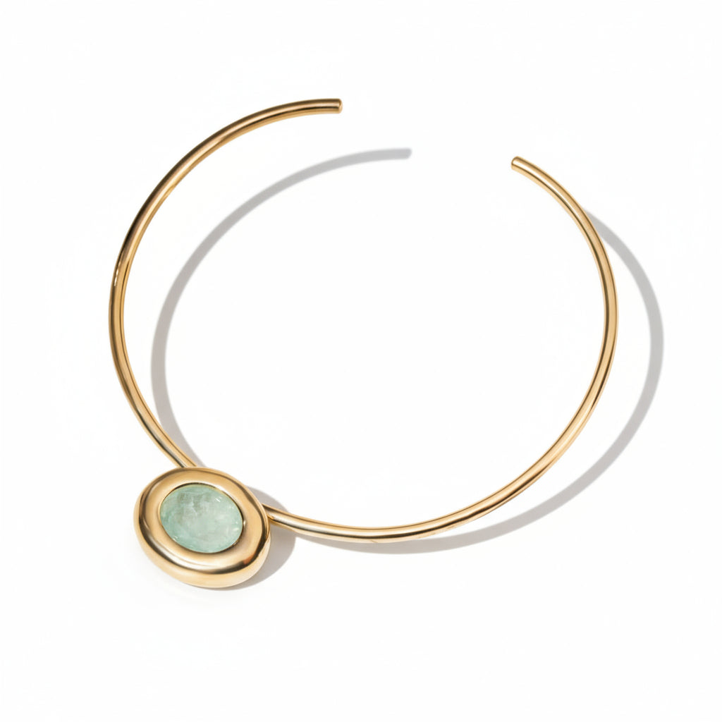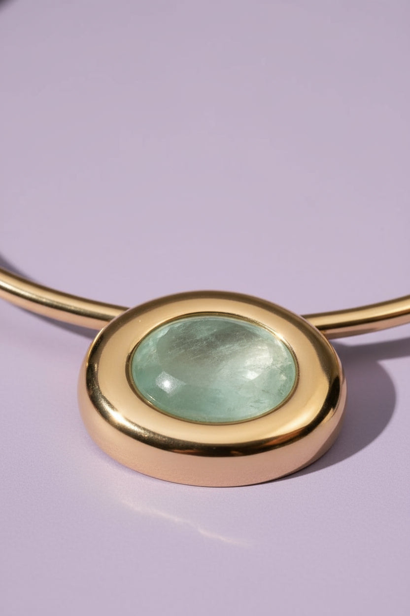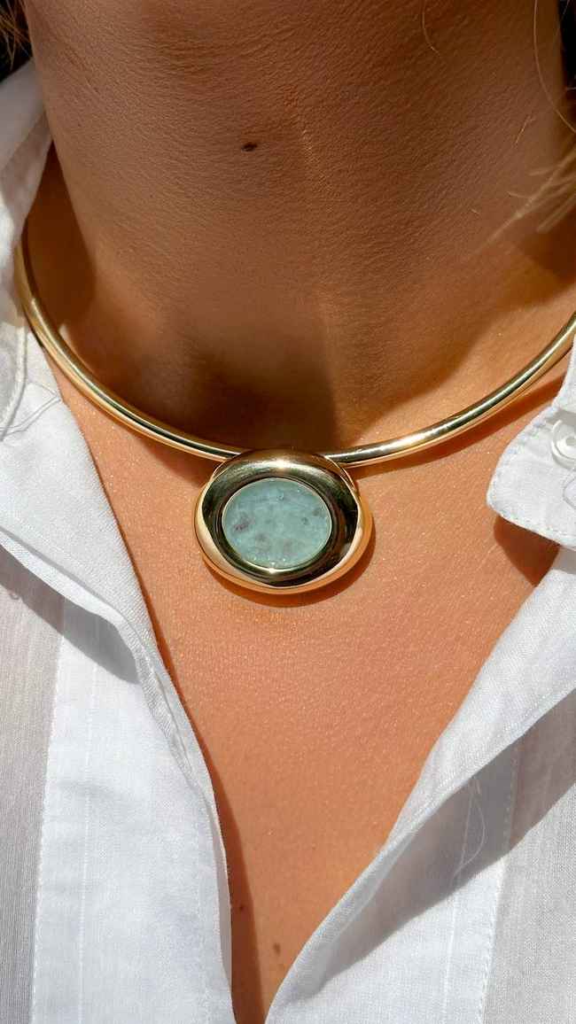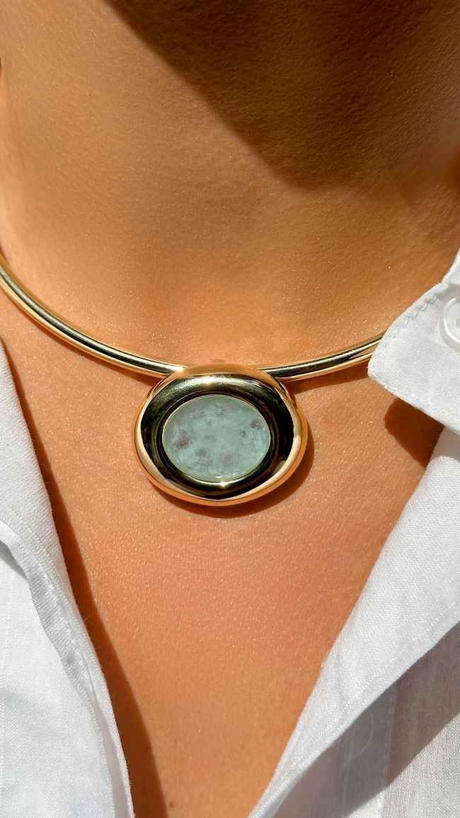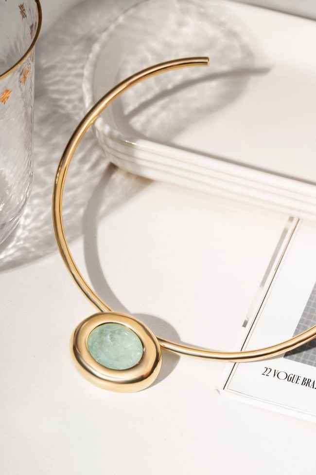 Gargantilha com aro delicado e pingente em Fusion Turmalina Light, que se destaca pelo tom suave e elegante da pedra. Uma peça sofisticada, ideal para iluminar o colo com modernidade e sutileza