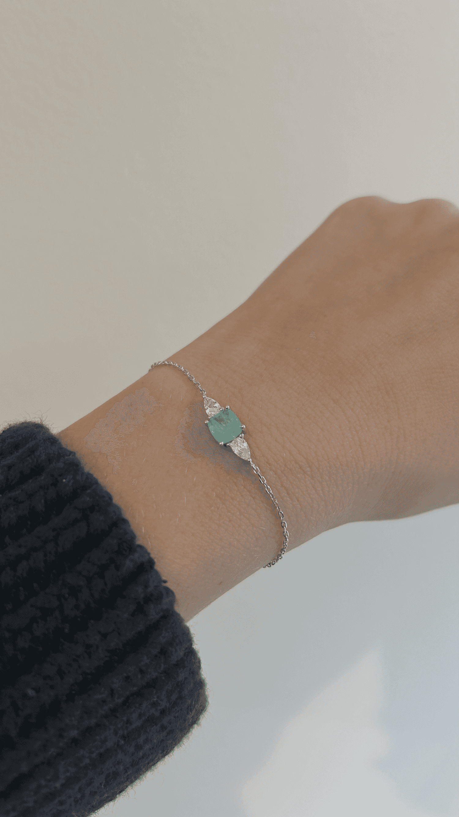 Delicada e elegante, esta pulseira apresenta um quadrado central em destaque, acompanhado por delicadas gotas em cada lado. Um design harmonioso que combina brilho sutil e sofisticação, ideal para complementar qualquer look com charme e estilo