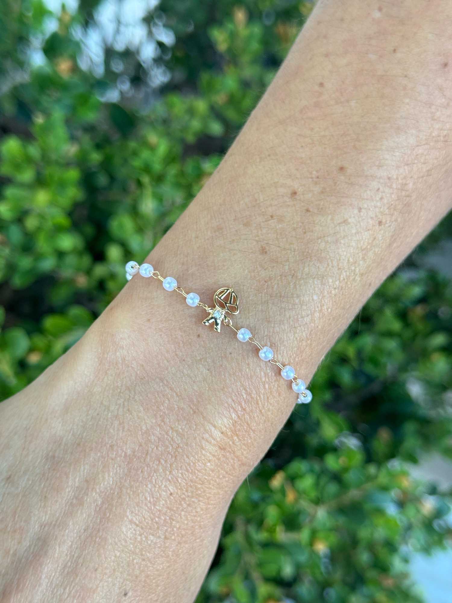 Material: metal com banho de ouro 18k Detalhes: pérolas sintéticas e plaquinha "Boy" Estilo: delicado, simbólico e contemporâneo