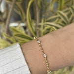 Pulseira delicada em Prata 925 com bolinhas intercaladas por um ponto de luz, criando um visual elegante e sutil. Uma peça versátil, perfeita para complementar produções femininas com charme e sofisticação