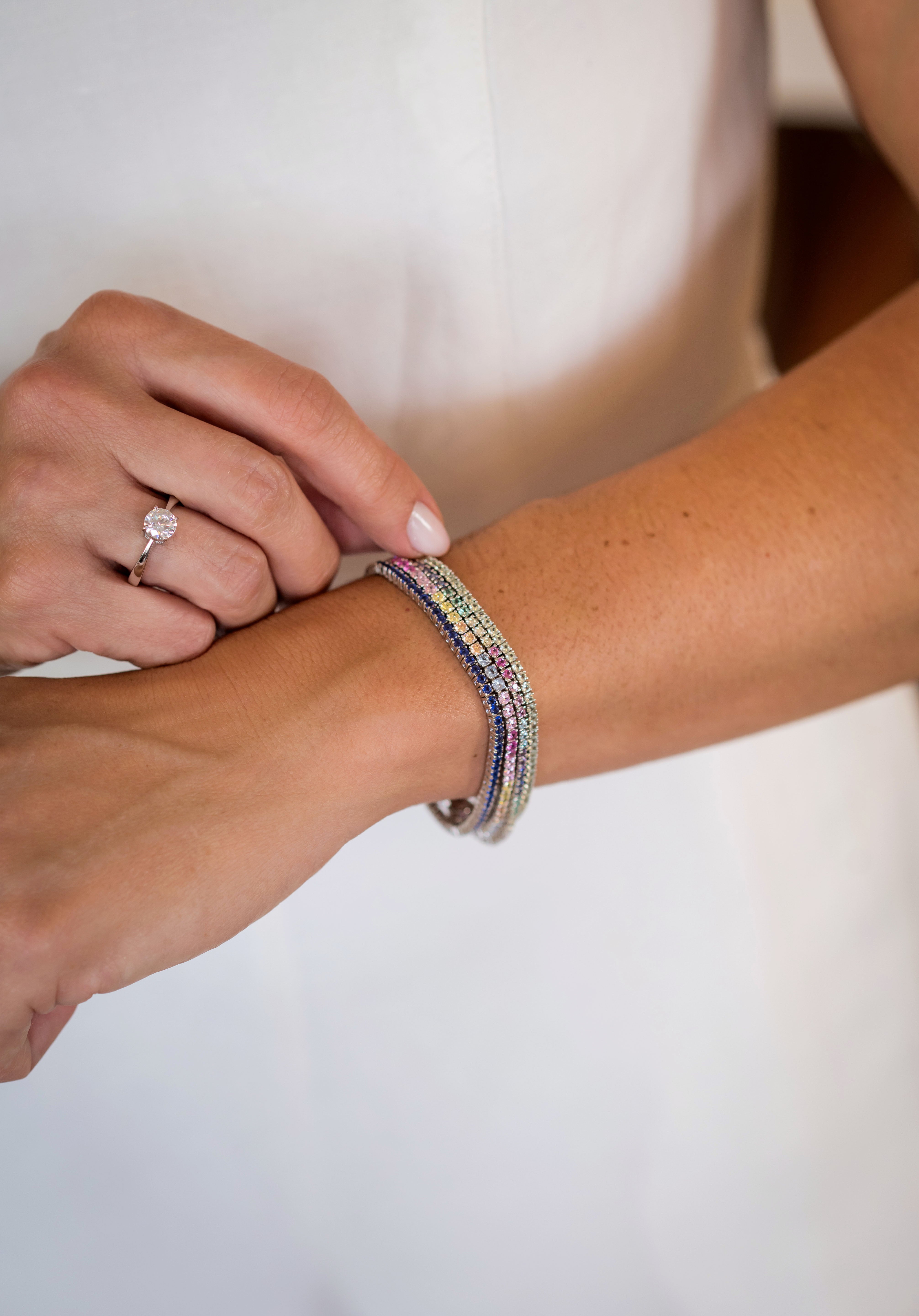 Pulseira Riviera em Prata 925 Peridoto 2mm 4 garras