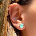 Brinco Fusion Esmeralda Colombiana Oval com Zircônias Brancas